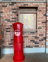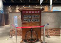 在三轮车的旁边有设置旧式的邮筒和以前的地图