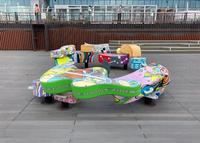 再往下则是用各式行李箱的造型做成的观景座位区,色彩很缤纷可爱