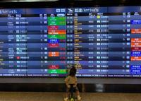 在机场捷运到美食广场中间还有航班资讯的电子墙