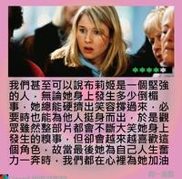 但当电影不断展示她身旁有许多更鸡掰的人(对不起我想不到比鸡掰更适合的词,比如整桌都是结婚的人然后居然有人白目到逼问她「你觉得为什么有这么多大龄剩女嫁不出去?」然后所有人都抱着身旁伴侣鸡掰的看着她,这到底是什么酷刑现场?)我们就逐渐从嘲笑她变成尊敬她,特别是她明明自己感情被搞的一团乱,却还有心力陪被NTR的老爸,看着抱怨老爸的妈妈在电视上与老王工作。