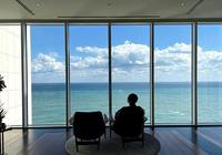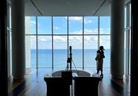 每层电梯一出来就能看到一望无际的湛蓝大海及蓝天白云
