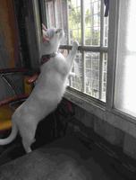 这里有非常多不同品种的猫咪,大概分类白猫、花猫、橘猫...都有,如第一张图片上的猫就是白猫,非常美,牠叫做七七,领养猫咪需要跟侨安幸福猫咪坊的负责阿姨联络,当然一定有试养,要看领养的主人能不能够好好照顾牠。