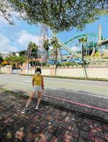 中秋连假时间本想全家人去义大游乐世界玩,但一走到门口就被热情的太阳打消念头??,在停车场与云霄飞车合照完