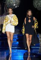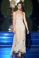 相较於Kim,Donatella这边就比较没有这么多比例请名模,不过她可是有超级压箱宝。可以看到AnjaRubik、MariacarlaBoscono跟NaomiCampbell。而所谓的压箱宝就是精灵系中已经休息一段时间的英国前精灵LilyDonaldson。