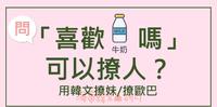 注解:牛奶的韩文(우유) 与英文you的谐音双关