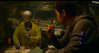 这个设计真的很棒,不只是对角色来说方便,对於演员来说可能也是个方便操作。对於文化上的多元并呈也提供了方便法门,就不会有那种,全片都英文的情况下,突然冒出一两句中文或日文,显得好像中日文多神秘多难解,特意要展现出其他语言的做法,真的让人很出戏。现在有了翻译蒟蒻,中英韩泰越(?)都能够自然地喷自己的语言,自然多了。也许未来类型的作品,这种设计有变成标配的可能(?)
