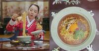 申惠善的男人灵魂在现代是厨师,宫廷里的食物吃不惯,甚至觉得太清淡,第一道做出来的食物就是韩国现代讲的泡面,不仅自己擀面然后下锅油炸,成为古代初代泡面,并结合香菇的香气、大葱的香气、肉的香气,被御膳房称作「三香拉面」,这个部分就是在致敬韩国泡面始祖「三养拉面」。