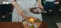 中间因为中殿娘娘身体微恙所以很久没做菜了,一直到第10集,再度进入御膳房啦,甚至带领整个厨房大家一起做料理,用牛骨熬制的高汤,但申惠善还在汤里加入的蛋白,消除汤头的腥味,接着把煮熟的饭加入豆芽、青菜、牛肉丝、牛肉片后,最后临上熬制的牛骨高汤,就成为升级版的牛骨汤饭,在朝鲜时期,还未有把汤跟饭直接结合得饮食,必须分开放,大王大妃娘娘一开始还有点生气,不过陌生又熟悉的味觉,也唤起大王大妃娘娘的思母之情。