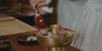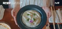 申惠善再度为大王大妃娘娘制作美食料理,用马铃薯做成的面团,用汤匙挖成椭圆形,然后将宫中的牛羊的奶挤爆,加热煮成浓稠状,并加入刚刚做好的马铃薯面团,就成为一道朴实但人身心灵都满足的暖心料理,其实就是马铃薯团子就是现代的面疙瘩,而浓稠牛奶就是我们讲的白酱,十足的一道纯手工料理。