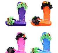 一般的夹脚拖鞋、室外拖鞋,设计都比较简单,不过少女时代在后台休息,还有舞台彩排时,穿上有鲜艳水果造型、昆虫造型的夹脚拖鞋后,马上又带起流行!这款拖鞋在人字的部分,因为有一大串水果,看起来超可爱的!而且拖鞋的底部,有一定的高度,不只好穿舒服,又可以默默让比例变更好,看来少女时代从以前开始,就很认真在经营身材比例这块了!